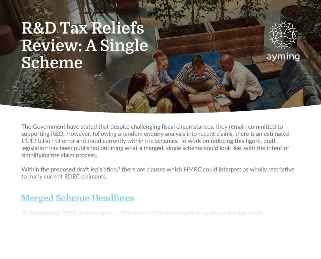 Ayming has specific concerns over two elements of the proposal and how these might negatively impact many of our large clients. These are concerning subcontracted work and subsidised expenditure. In this free-to-download document, we outline the meaning of these two specific clauses and explain our concerns about their potential negative impact.